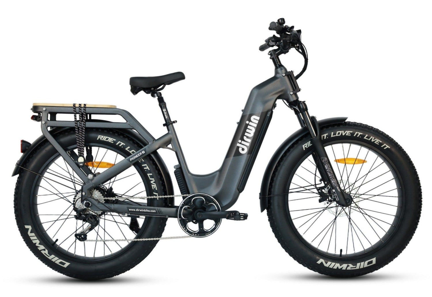 Conquer any terrain with the Dirwin Pioneer series of fat tire electric bikes. Designed for ultimate stability and performance, these e-bikes are perfect for adventurous outdoor activities like hunting, fishing, bikepacking, and camping.