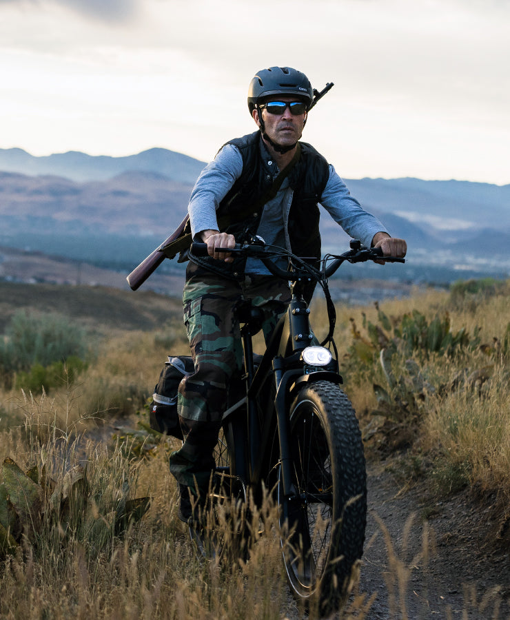 The Pioneer Lite hunting electric bike is ready for any rough conditions, from mountain paths to gravel roads. A powerful 750W motor, up to 50 miles range, and 26“ x 4.0” wearproof fat tires will take you anywhere with confidence. Your ride will be smooth thanks to the hydraulic suspension fork and when it’s time to stop the 180mm Hydraulic Brakes are always up to the task. The Pioneer Lite is IPX5 water resistant and also includes front and rear lights along with an ultrabright color LCD display with USB charging so your fat tire hunting ebike adventure doesn't have to stop when the sun sets.